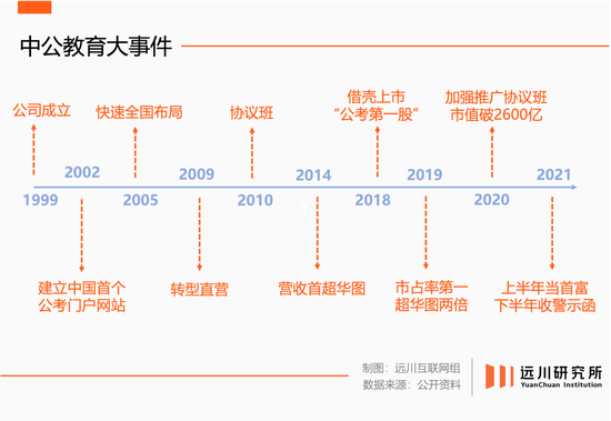 2018年中公教育借壳上市,正式升咖为“公考第一股”。次年,中公教育市占率达到第二名的两倍,公司76%收入都由协议班贡献[3]。