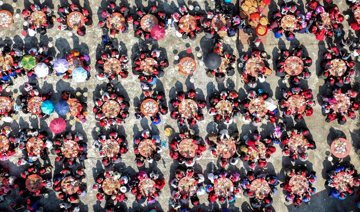 立冬至,丰收忙。在三江侗族自治县林溪镇高秀村,村民们精心筹备一桌桌百家宴,共享丰收喜悦。(三江侗族自治县纪委监委供 龚普康/摄)