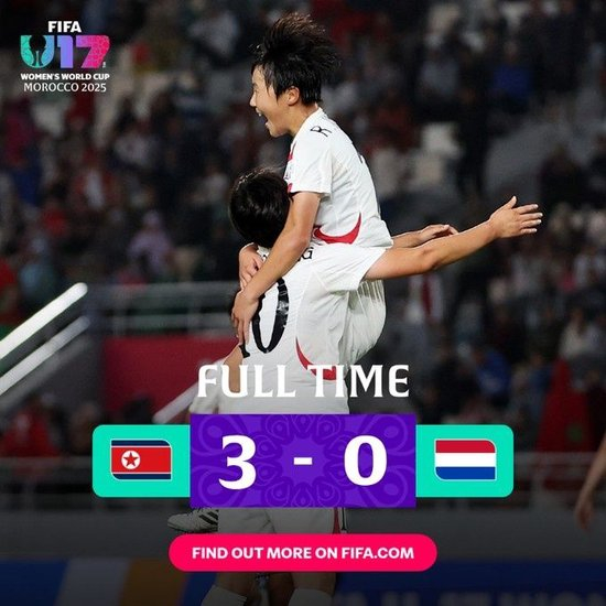 直播吧11月9日讯 U17女足世界杯决赛,朝鲜女足U17对阵荷兰女足U17。上半场,朝鲜队连入三球。易边再战,柳炅香失单刀,李景任中框,荷兰进球被吹。最终朝鲜女足U17队3-0荷兰女足U17成功卫冕,上一届朝鲜女足U17决赛点球大战战胜西班牙捧杯!