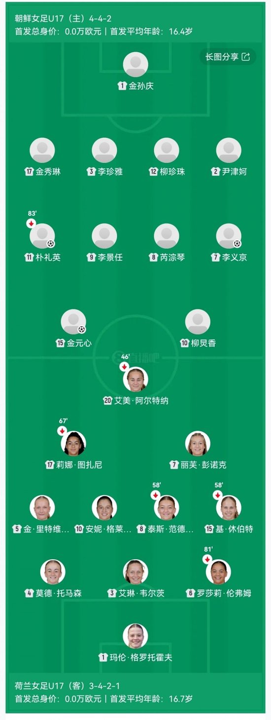 第18分钟,荷兰后场出球失误被断,李义京送出直塞,朴礼英破门!VAR介入确认进球有效!朝鲜2-0领先↓
