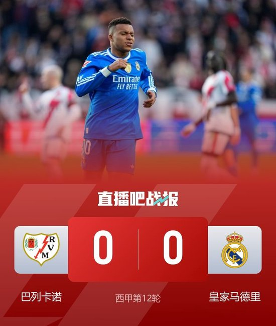 直播吧11月10日讯 北京时间11月9日23:15,2025-26赛季西甲联赛第12轮,巴列卡诺坐镇巴列卡斯球场迎战皇马。上半场维尼修斯、劳尔-阿森西奥失良机,两队暂0-0战平;下半场两队也都没能改写比分,最终皇马0-0巴列卡诺,联赛四连胜终结,5分领跑积分榜。