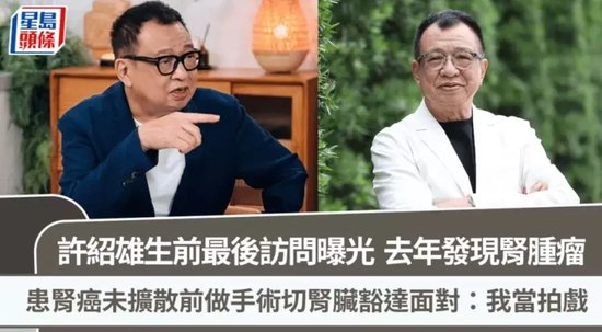 据港媒《星岛头条》报道,由香港已故资深绿叶配角许绍雄生前录制的电视节目《医生与你——讲饮讲食讲健康II》于11月11日播出,节目中许绍雄透露自己患癌一事,详细讲述生病经过。