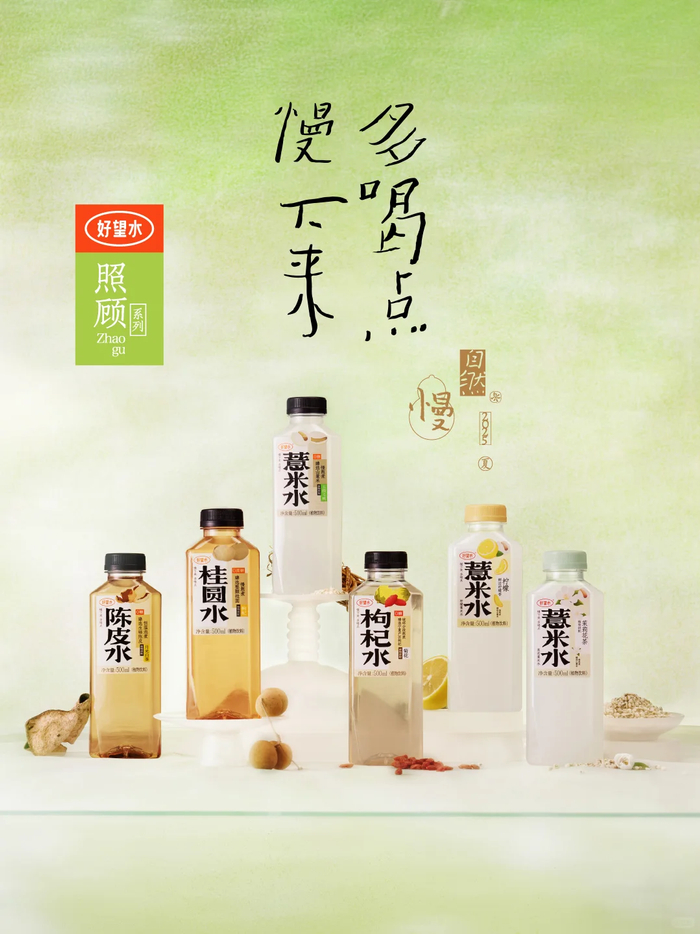 这构成了好望水团队的经营价值观:产品追求精致与品质感,品牌理念倡导美好与温暖。也让一瓶瓶“照顾系列”薏米水具备了从商品价值向情绪价值跃迁的内生力。